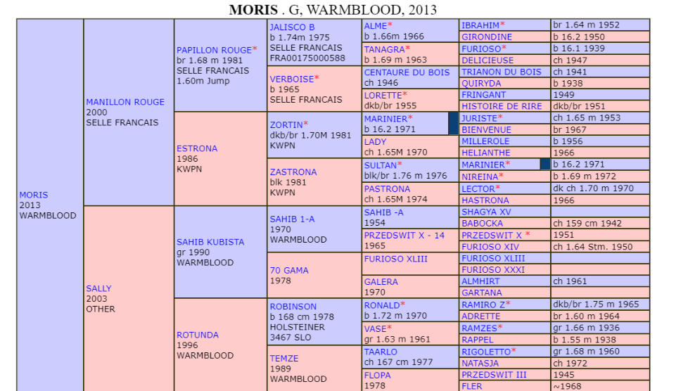 medal horse. He is by Manillon Rouge a son of Papillon Rouge. His dam sire, Sahib Kubista competed himself at 1.60m and produces mares with a